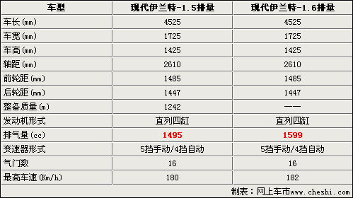從上表我們看出,北京現代即將推出的1.5排量的伊蘭特在車身尺寸上和1.6排量的車型完全一樣。只是發動機換成了1.5升的G4EC汽油發動機。變速器與1.6車型一樣,都是5擋手動變速器和4擋自動變速器。由于排量的降低,1.5排量的伊蘭特最高是時速值達到了180 Km/h,1.6排量的車型可以跑到182Km/h。與此同時根據網上車市價格檢測系統顯示,目前伊蘭特的優惠幅度又有所增加,最高優惠幅度已經達到了1萬。具體車型售價見下表。