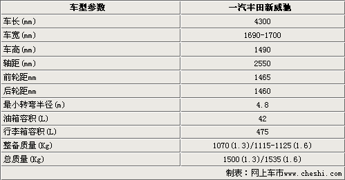 一汽豐田的A0級小車威馳,被豐田汽車公司稱為是“專門為中國設(shè)計的全新車型”。豐田新威馳于08年正式推出,主要目標消費群體為80后的年輕人,其“生而簡酷”的特性已在年輕人群中引起極大反響。近日我們從豐田內(nèi)部人士處獲悉到,豐田威馳即將小改款,同時我們在第一時間得到改款后新威馳的圖片和車型參數(shù)。新款威馳在外形設(shè)計上將更加硬朗,與家族老大哥凱美瑞有幾分相似,在舒適配置上也會更加豐富,在車身尺寸和動力系統(tǒng)方面與目前銷售車型相同。