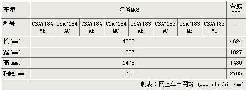 從參數上來看,名爵MG6與榮威550的軸距是一樣的,畢竟出自一個平臺都為2705mm,不過MG6雖為掀背車在車長方面卻比550要長一些,也比550略寬10mm,但車高差一點點。據了解,名爵MG6將推出了8個型號的車型,預計將有1.8L和1.8T兩個排量車型。