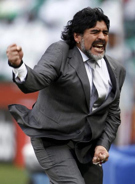 馬拉多納回來了,以一個(gè)新身份——球王主教練,帶領(lǐng)梅西等一班天才,想要體驗(yàn)真正黃袍加身的快感。北京時(shí)間6月12日晚,阿根廷小勝非洲雄鷹,馬拉多納用快感在鉆石王國(guó)肆虐了一把,熊抱木訥梅西,親了又親。