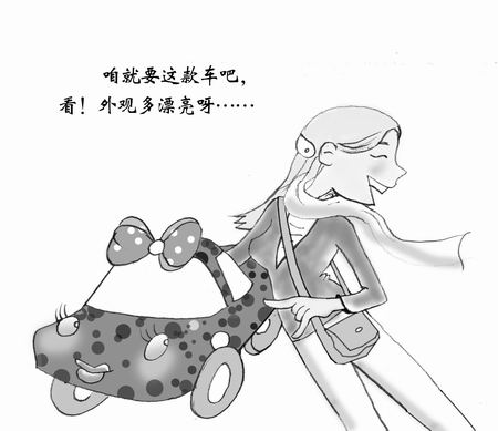 “大多數女性購車者購車僅憑著自己的第一印象,對車子外形要求往往特別挑剔,第一眼相不中的車型,無論性能如何好、別人如何推薦,一般都不再考慮,因此,一些外形特別引人注目的車型往往比較討巧。”北京現代某4S店銷售人員告訴記者,女性購車與男性明顯的不同就是過于感性。“外觀是女性買車時最關注的問題。女性顧客選車時,在一定價位內的車型中,往往先看對外形和顏色是否滿意,然后再了解車的其他性能。”