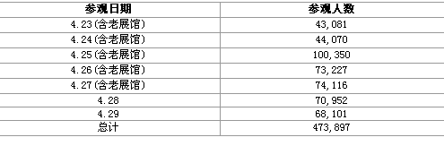 經2010北京國際車展秘書處統計,截止到2010年4月29日17:30,本屆北京國際車展新老展館參觀人員數量如下: