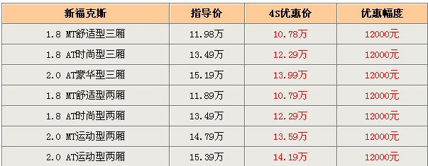 筆者日前走訪北京長安福特4S店時獲悉,目前新?怂箖灮萦痔嵘2000元,全系優惠1.2萬元,由于新嘉年華的上市,商家為了留出庫存故加大了新?怂沟淖尷。