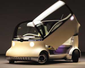 “PIXY”是僅供1人乘坐的低速移動工具。其主要特點是:相當于人行走的移動速度,絲毫不會帶給人壓迫感的卵形車身、柔軟的外裝材料。由于裝載了可快速充電的電容器的發動機驅動,因此不會有廢氣產生。“SSC”是可以前后放入兩個“PIXY”的輕型汽車合體,動力采用的是燃料電池系統。