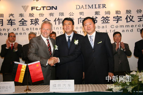 中新網9月4日電 日前,福田汽車與戴姆勒公司簽訂了合作意向書。雙方約定將在中國設立股比50:50的中重卡合資公司,戴姆勒將以現金作為其資本出資,而福田則將其歐曼相關的全部中重卡業務經過評估后向中國合資公司出資。據悉,中國合資公司是雙方全球合作業務的運營中心,也是雙方展開全球合作的管理決策、研發、生產、供應鏈管理、營銷管理等中心。