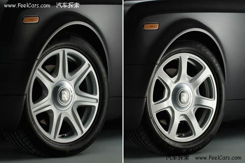 09款幻影的變化主要體現在一些細節上。最引人注目的是21寸輪轂,勞斯萊斯增加了兩種輪轂設計,一種采用了車漆噴涂,而另一種部分則采用了拋光處理。前進氣的造型也發生了些許變化,兩層式的設計與兩門版幻影有些類似。