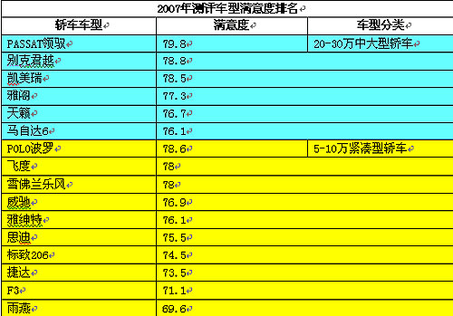 07年度CACSI測評結果出臺 上海大眾兩車型居榜首
