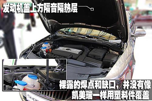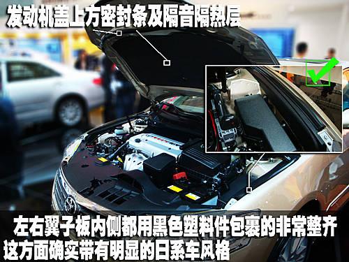 斯柯達昊銳的發(fā)動機艙布局也是比較整齊,位于發(fā)動機蓋上方的隔音隔熱層非常厚實面積也很大。但是記者注意到在前翼子板內側制造中留下的工藝孔并沒有像凱美瑞一樣用塑料件覆蓋。