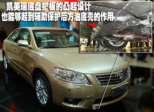 凱美瑞的發動機下護板面積并不算大,發動機油底殼以及變速箱油底殼位置下方沒有被護板覆蓋。但是其下護板的凸起設計相比發動機油底殼以及變速箱油底殼更加低,因此也能夠起到一定的保護作用。