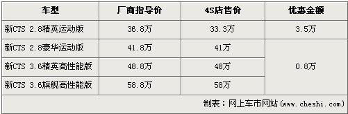 在美國素有“駕駛者之車”美譽的凱迪拉克CTS豪華運動轎車,是一款將動力性、操控性、舒適性完美結合的經典產品,其的售價區間為36.8萬元-58.8萬元。近日據網上車市價格數據監測顯示,凱迪拉克新CTS最高優惠仍為3萬元,具體詳情看下表: