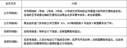 2.沿京承高速,從后沙峪出口下高速后右轉,經羅馬環島右轉,沿新國展路標直達。這條線路是我們向展商和觀眾推薦的重點行車路線。