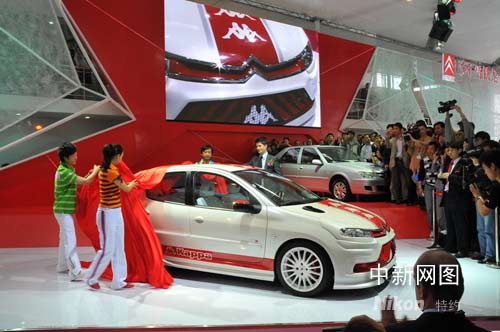 中新網4月22日電 4月21日,由東風雪鐵龍和運動服飾品牌Kappa聯手打造的Kappa版C2,在北京國際車展上亮相。內地偶像派明星胡靜、王櫟鑫親臨發布會現場。