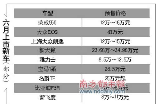 據了解,今年僅3月中下旬,每天差不多都有一款新車上市。到了傳統淡季的年中,第二輪上市潮殺到,榮威550、上海大眾朗逸、雅力士、寶馬1系……有近十款車排隊上市。其中涵蓋了敞篷跑車、緊湊型跑車、中型轎車以及豪華進口車,吸引了不少消費者的眼光。
