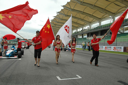 AGF首戰海外便“入鄉隨俗”,聘請了當地的眾多美女擔任賽車寶貝,這些馬來女郎在雪邦賽場上與來自中國的方程式賽車相映生輝,展現了萬種風情。