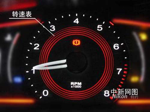 位于中央的轉速表去,首次采用脈沖感應設計,使儀表盤更具運動感,并能快速靈活的表示發動機轉速。中央轉速盤上還包括用來表示車輛手剎狀態的手剎指示燈等車輛信息。當手剎被拉起后,該指示燈自動點亮。手剎被放下時,該指示燈自動熄滅。