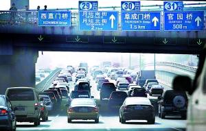7時許,記者沿機(jī)場高速公路進(jìn)城,行經(jīng)北二環(huán)、西二環(huán)到達(dá)北京市交管局。與以往的周一早高峰相比,雖然用眼睛很難判斷出車輛是否減少,但駕車時,確實(shí)感覺稍微輕松了一點(diǎn)。特別是在機(jī)場高速路和北二環(huán)雍和宮至鼓樓一線,基本能保持日常平峰狀態(tài)時的速度,但是在德勝門橋前、西直門橋周邊等日常擁堵路段,堵車情況并未明顯好轉(zhuǎn)。交管局指揮中心副主任孔令輝說,今天的早高峰擁堵路段有所減少,一方面是限行措施發(fā)揮一定作用,另一方面則是“錯時上下班”的制度得以實(shí)施,將早高峰的車流量分流到9時以后。“雖然實(shí)行了‘五日制限行’措施,但我們還要提醒廣大駕駛員,不要抱太高的期望值,雖然總體情況稍好,但是一些主要的、常規(guī)的擁堵路段還是沒有明顯的緩解,比如東西二環(huán)、東西三環(huán),特別是麗澤橋至六里橋,廣安門橋至復(fù)興門橋以及雙營路等路段,擁堵情況仍然較為嚴(yán)重。而且,雖然早高峰情況稍好,但預(yù)計(jì)晚高峰的流量情況仍然比較集中。”孔令輝說,在這些常規(guī)擁堵路段,早晚高峰期間的“潮汐式交通特點(diǎn)”還是較為明顯的。