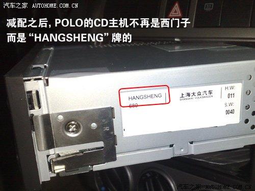 POLO全系都是單碟CD,未減配之前是國產(chǎn)的西門子,簡配之后是什么品牌呢?我們從網(wǎng)友拆車的照片中可以找到,簡配之后的音響主機品牌為“航盛”,很湊巧的是,我記得09款速騰的音響主機也是航盛牌的。