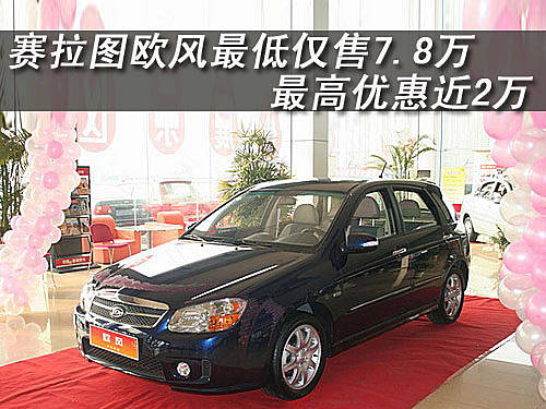 賽拉圖歐風(fēng)是東風(fēng)悅達(dá)起亞汽車(chē)有限公司旗下的首款兩廂車(chē)型,全系有四個(gè)車(chē)型,價(jià)格區(qū)間為9.18萬(wàn)元-11.68萬(wàn)元。近日,記者在走訪北京地區(qū)東風(fēng)悅達(dá)起亞4S店時(shí)了解到:目前購(gòu)買(mǎi)賽拉圖歐風(fēng)車(chē)型最高可以得到1.78萬(wàn)元的現(xiàn)金優(yōu)惠,具體車(chē)型售價(jià)見(jiàn)下表:
