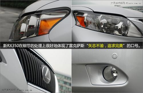 超細的面板間隙體現出新RX350在做工上的精益求精。這不禁讓我想起了雷克薩斯的廣告語“矢志不渝,追求完美”。鷹眼大燈與ES350頗為神似,炯炯有神。