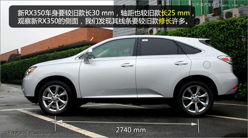 新RX350車身要較舊款長30 mm,軸距也較舊款長25 mm。觀察新RX350的側面,我們發現其線條要比舊款修長許多,一改舊款車型給人的臃腫之感。