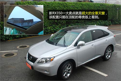 從高處俯瞰新RX350,長890 mm,寬800 mm的全景式天窗映入眼簾。這樣的設計可以讓后排乘客也可充分享受到陽光的滋潤。值得一提的是,該項配置僅可在售價達85.2萬元的RX350尊貴版上看到。