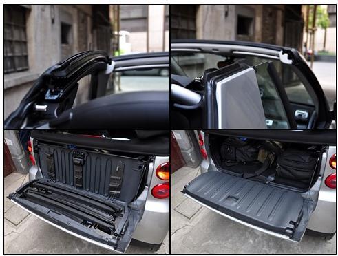 如果想徹底享受陽光的話,那就干脆將它全部打開!當車窗開啟完畢后其實還有一項工作是你值得去做的,那就是去掉車門上方的頂框讓smart變成一輛不折不扣的敞篷車!