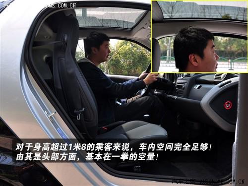 smart只為兩人設計,1867mm的軸距、1543mm的高度足以在一個小后備箱之外提供足夠大的乘坐空間了!即使是身高超過1.8米的乘客坐上去都很充裕,頭部方面仍有一拳的余量!