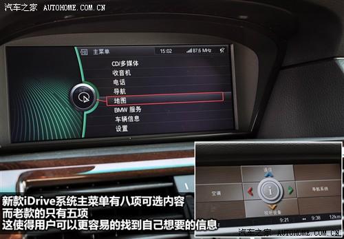 我們先來看一下新款和老款在控件上的區(qū)別。從圖中可以明顯看出,被7個快捷鍵包圍的新控制旋鈕看上去要比老款復雜一些,不過老款那么簡潔,但正好是新加的這些快捷鍵使iDrive系統的簡便性有了很多程度的提升。這個我們下文會詳細說明。