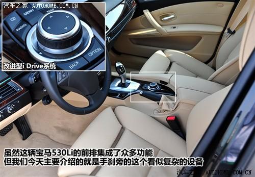 我們拿到的是一輛寶馬530Li豪華型,這是國產5系轎車的最高配車型,但對于外形、內飾以及空間等方面我們在以前的文章中都多次詳細介紹過了,所以在此將不贅述。車內唯一能引起我們興趣的就是手剎旁一堆按鍵包圍著一個金屬旋鈕的設備——著名的iDrive系統,確切說是它的進化版。