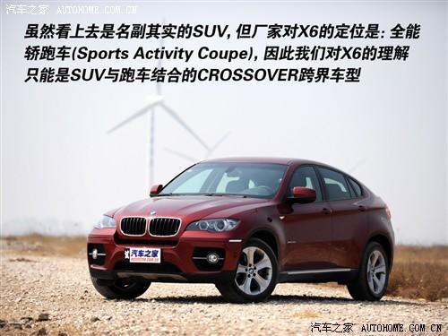 跨界的概念最早出現(xiàn)在尺寸比較小的車上,例如我們接觸較早的SX4和CROSS POLO,但誰也沒有規(guī)定只有小車才能跨界吧?現(xiàn)在跨界的概念已經(jīng)延伸到了SUV和跑車領(lǐng)域,那么今天我們體驗(yàn)的寶馬X6是怎么跨界的呢?廠家說它是一款全能轎跑車,或者說是一款具備越野功能的轎跑車,所以我們可以認(rèn)為它是一款SUV和轎跑車跨界的車型。