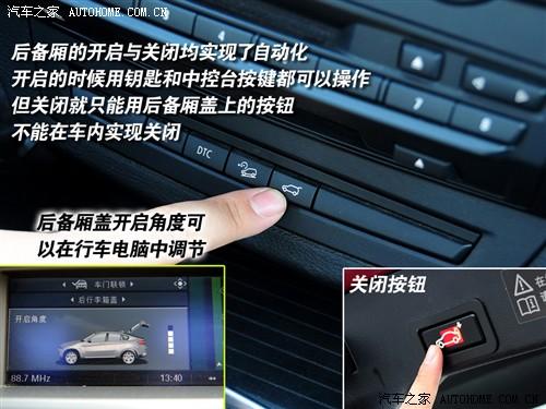 在音響操作區域下面有四個按鍵分別是倒車雷達開關、DTC開關、下坡輔助開關和后備廂開啟按鈕。輕輕一按,X6的后備廂蓋就可以自動打開,但再輕輕一按,卻不會自動關閉,必須要下車去按后備廂蓋上的開關才可以關閉,在行車電腦中可以調節后備廂蓋的開啟角度。