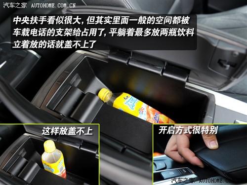 不過手套箱和扶手箱里面的儲物能力就不敢恭維了,空間都不是很大,手套箱里面還有CD碟倉,而扶手箱里面有車載電話的支架,所以這兩處空間表現都比較一般。