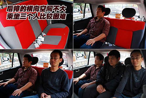 后排的腿部空間固然表現(xiàn)不錯,但后排的座椅寬度卻仍然是微型轎車的標(biāo)準(zhǔn)。通過圖中可以看的出來,后排坐下兩名乘客正合適,如果再擠上一個人,會顯得非常擁擠。不過如果身材小一點(diǎn),后排坐下三名乘客還是沒有問題的。