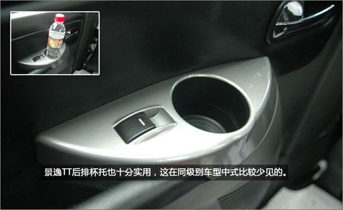 “景逸TT”全車共有38處個性儲物空間;此外,當后排座椅被放倒時,“景逸TT”的行李箱空間可從700升立刻增加至1970升,足可以滿足車主的任何需要。細節(jié)設計充分說明,景逸TT已經(jīng)將人性化設計發(fā)揮到不錯的程度,每個細節(jié)都體現(xiàn)了設計師的用心與體貼。