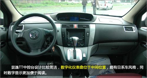 景逸TT的儀表盤位于中控的正中央,紅色的背光特別醒目,發(fā)動機轉(zhuǎn)速、車輛時速、油料情況、音響、空調(diào)控制等信息都能得到充分的顯示。中控臺上采用人機工程學原理設計的各種按鍵,簡單易用,處處體現(xiàn)了人性化關懷的設計元素。而且,“景逸TT”換擋桿也移至了中控臺上,不僅使用順手便利,更為駕駛員右側(cè)騰出了更大的活動空間。