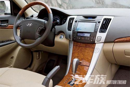 相比外觀的年輕態(tài),SONATA領(lǐng)翔的內(nèi)室改進(jìn)也算是大刀闊斧。雖然主打商務(wù),但全新的內(nèi)室風(fēng)格并不乏活潑氣息,簡單的顏色搭配和悅動非常相像?上У氖,做工和用料依然不夠講究,讓人略顯失望。還有就是仿桃木面板,可能它在一部分人群心目中是個顯范兒的設(shè)計,當(dāng)然還要看材料的顏色和質(zhì)感以及使用頻率和位置。中控臺是個亮點(diǎn),也讓我看到了現(xiàn)代今后的家族特征。方向盤下方取消了鑰匙孔,而使用無鑰匙啟動系統(tǒng),開始向同級別的日本車靠攏。藍(lán)色自發(fā)光儀表不僅美觀,簡潔時尚的三環(huán)設(shè)計,更將車輛狀態(tài)清楚地展現(xiàn)在駕駛者面前!昂笈殴こ獭币恢笔侨枕n中級車最引以為傲的地方,SONATA領(lǐng)翔當(dāng)然也不例外。真皮包裹的座椅以及扶手部分的材料非常柔軟,還設(shè)有煙灰缸、杯架及手動遮陽簾,中央扶手后部連通行李廂,人性化做得不錯。