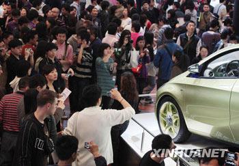 4月25日,2009上海國際車展開幕后迎來首個雙休日,當日接待參觀者突破13.6萬人次,展車被“淹沒”在“人海”中。新華社發(吳長青 攝)
