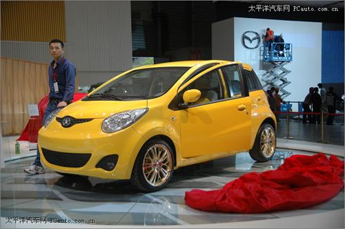 這款黃色的微型車被噴涂為全黃色的車身,靈巧的外形與可愛的外觀設(shè)計配合的相當完美。從車前看去,似乎是在對你微笑一般的前臉設(shè)計很討人,水滴型的前大燈更是給人一種流暢的感覺。