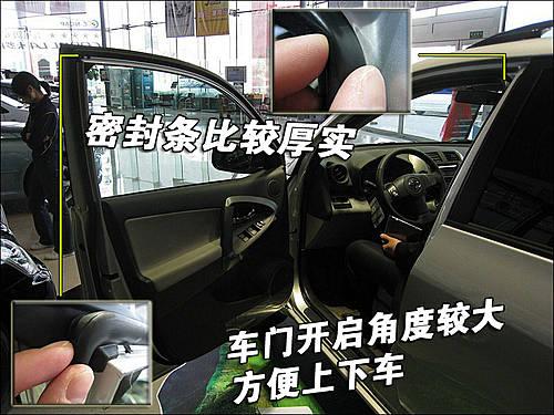 駕駛員一側車門完全打開后車門開啟角度很大,車身較高上下車都比較輕松。車門四周有橡膠密封條手觸感覺比較厚實,與車門緊密貼合時能夠起到很好的密封隔音作用。