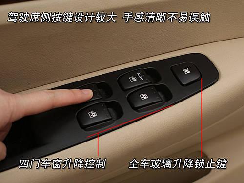 位于門內側的電動控制按鍵可一鍵自動降下玻璃窗,使用中發現降下后無法一鍵升起,駕駛席一側可單獨控制全車四個車窗的電動鎖止。