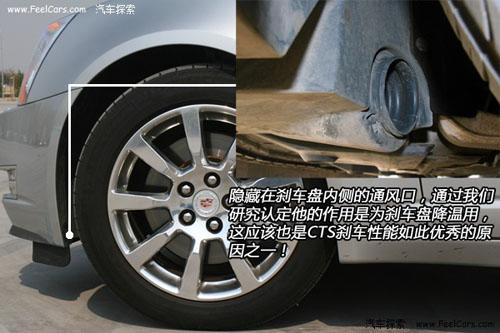 做完剎車測試,我們又對新CTS的輪胎,剎車盤片進行了仔細的觀察研究,發現在輪胎內側隱藏了一個出風口,正對著剎車盤。通過分析我們認定他的作用是對剎車盤降溫,這樣能夠讓剎車盤始終保持最佳狀態?磥硇翪TS能夠取得如此好的成績通用汽車在設計上確實下了一番苦心的。