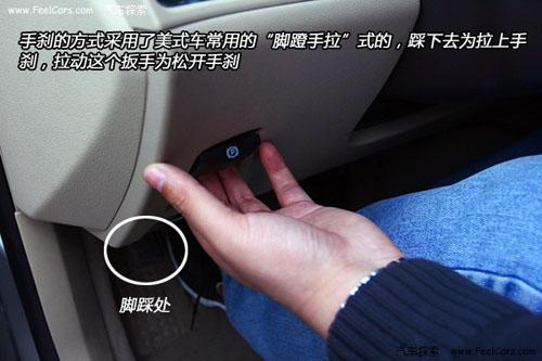 3.6L旗艦車型配備了無鑰匙啟動系統,不過還是在原來插鑰匙的地方設置了一個旋鈕,為什么不用按鈕呢?那樣看著會更酷一些!手剎采用了美式車型常用的“腳蹬手拉”式,踩下去為拉上手剎,拉動扳手為松開手剎。