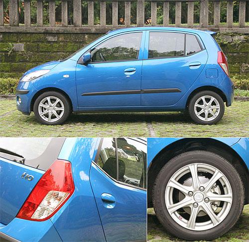 雖然為了爭取較寬敞的車室空間,i10采用了高車身的設計,但在車側腰線特意提高,加上側窗上揚收尾的線條,讓人不容易察覺i10高人一等的車身,在后車門把位置,原廠也在鈑件上加入一道折線,讓視覺效果更為豐富,而此次所試駕的頂級車型,則換上加裝的14吋鋁圈,增添運動氣息。