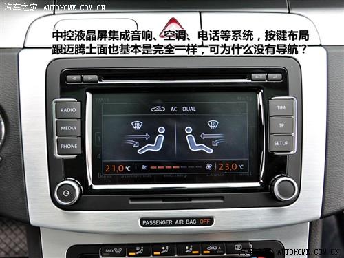 中控面板上有可以彈出的撥號鍵,右側則有一個儲物用的小抽屜,如果你見過進口邁騰就會覺得這些都很眼熟。一個中央液晶屏基本囊括了整個音響、導航、電話和空調系統的功能,不過這款低配車型上沒有導航,按鍵布局跟國產邁騰一模一樣。