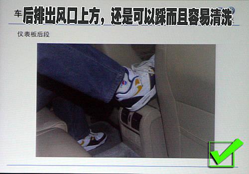 一汽大眾產品部工程師在演示這張照片的時候令在場媒體記者很吃驚,扶手箱打開后竟然可以當作副駕駛乘員的歇腳板。而且一汽大眾產品部工程師還告訴我們,“盡管放心的去用吧,它足夠結實!”。