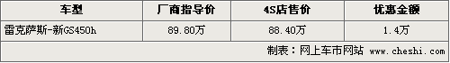 在雷克薩斯三款混合動力車型中,GS450h是的售價是最低的,消費者除了可以享受到1.4萬元的現金優惠外,還可以得到商家贈送的原廠汽車裝飾。