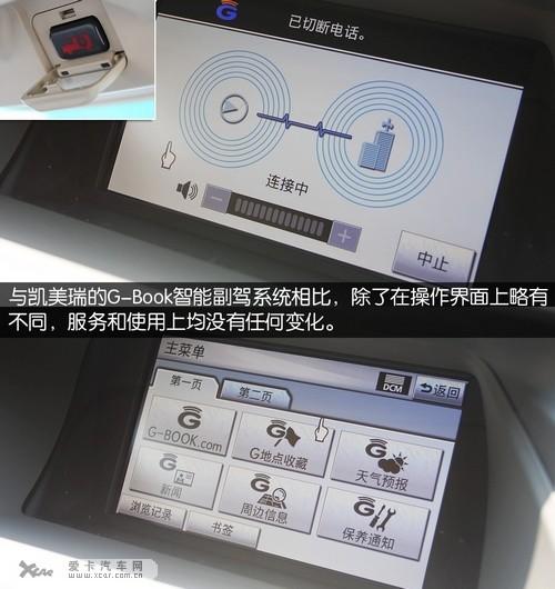 那么Remote Touch信息操作系統能夠控制哪些功能呢?除了常規的空調、音響、電話和導航等功能,之前在凱美瑞上亮相的G-Book智能副駕系統也被整合其中,除了在操作界面上略有不同,服務和使用上均沒有任何變化。