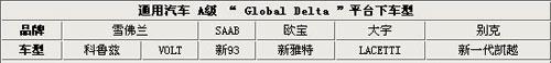 通用汽車在歐洲設計研發的“Global Delta”平臺,是定位于2009年后通用緊湊級車的全球平臺,它將成為未來通用旗下多達8款車型的共享平臺。其中甚至包括了在歐洲市場暢銷的歐寶雅特Astra、薩博93的新一代產品,而率先推出的雪佛蘭科魯茲就是這個平臺的代表之作。目前率先開發的雪佛蘭科魯茲已經來到國內,很快將以國產車的身份在國內上市。