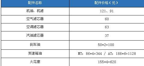 空氣濾清器在首保過后每次保養都建議更換,而汽油濾清器每3萬公里更換一次,空調濾清器是使用情況而定,但建議2萬公里更換一次,火花塞建議每3萬公里更換一次。為了方便計算,我們假設每年行駛2萬公里,3年行駛6萬公里,在6萬公里時進行比較大的保養,更換剎車油、轉向助力油和變速箱油等等。