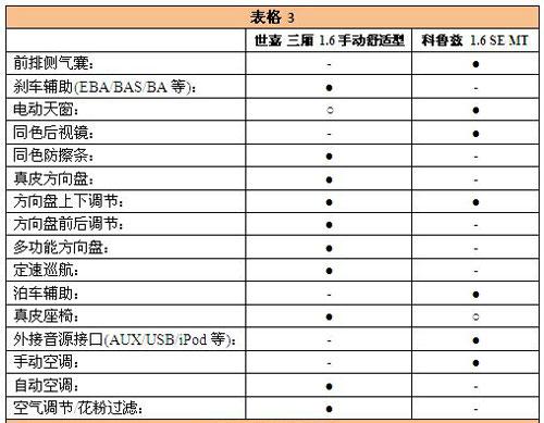 由于三廂世嘉和科魯茲的低端車型均搭載1.6L發動機,因此比較起來更加公平,而為了避免自動變速箱產生的成本差異,我們均以手動擋車型作為比較車型。